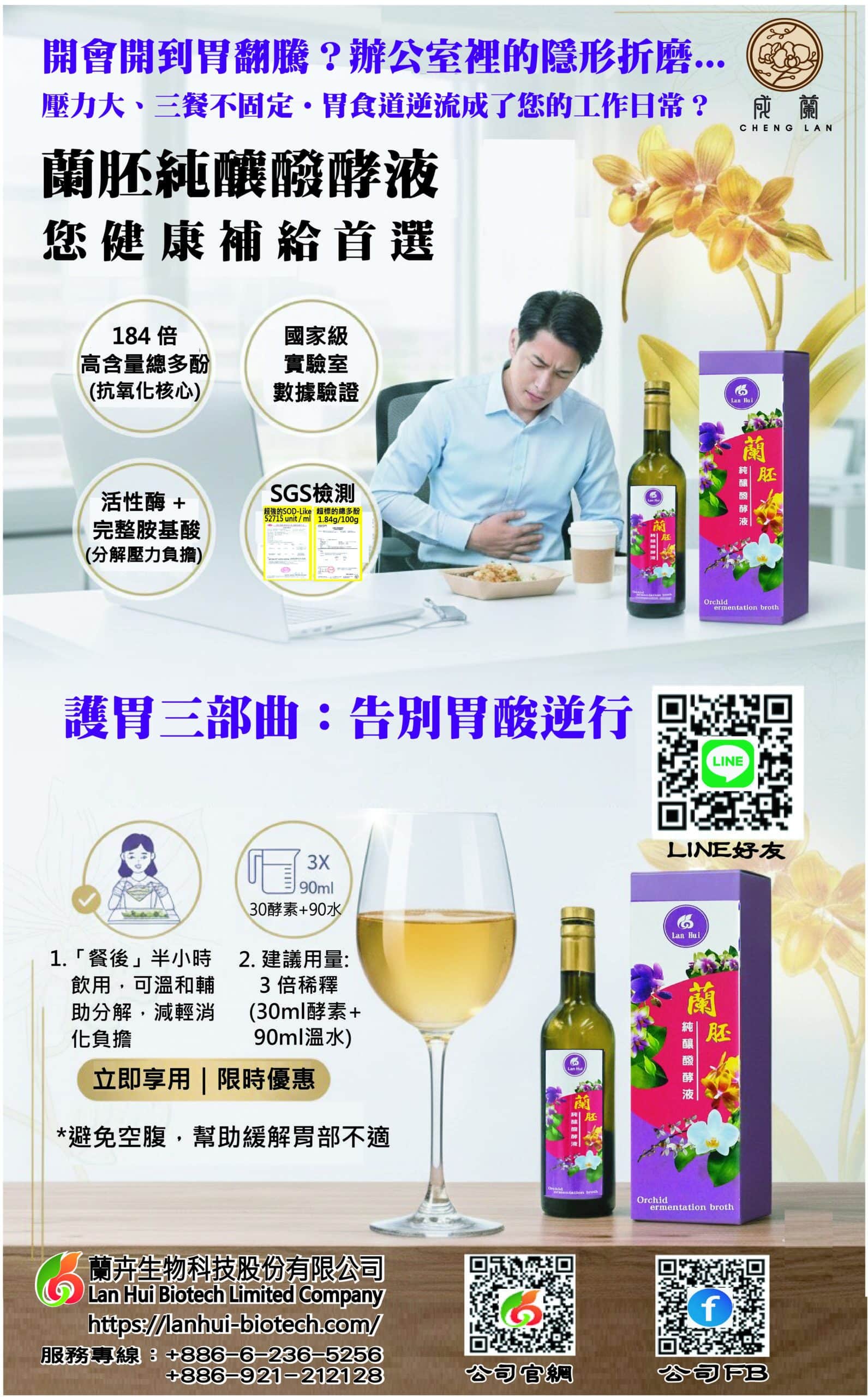 功能: *珍貴蘭花酵素、加強免疫功能 *增強體力、新陳代謝 *調整體質、幫助消化 *排便順暢、營養補給 *養顏美容、幫助入睡 *精神旺盛、健康維持